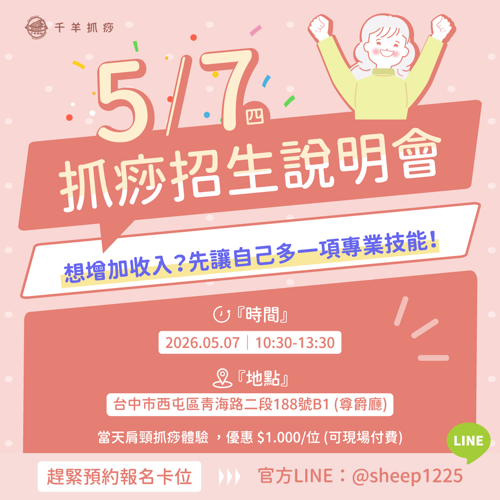 千羊抓痧 2024年4月台北抓痧課程招生說明會