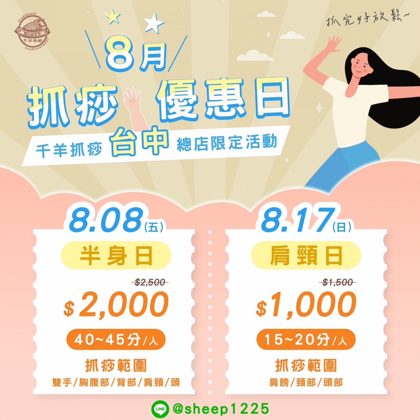 8/17(日) ♡ #肩頸抓痧日 .ᐟ