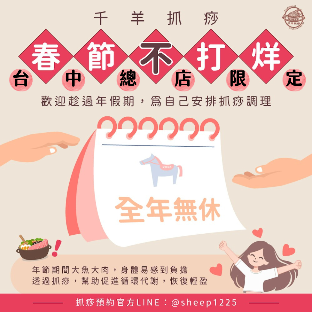 🧨春節不打烊,歡迎提前預約抓痧!