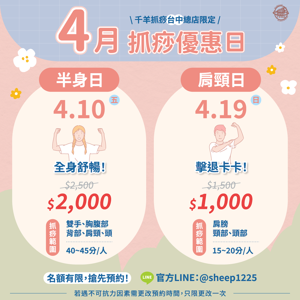 #4月抓痧優惠日