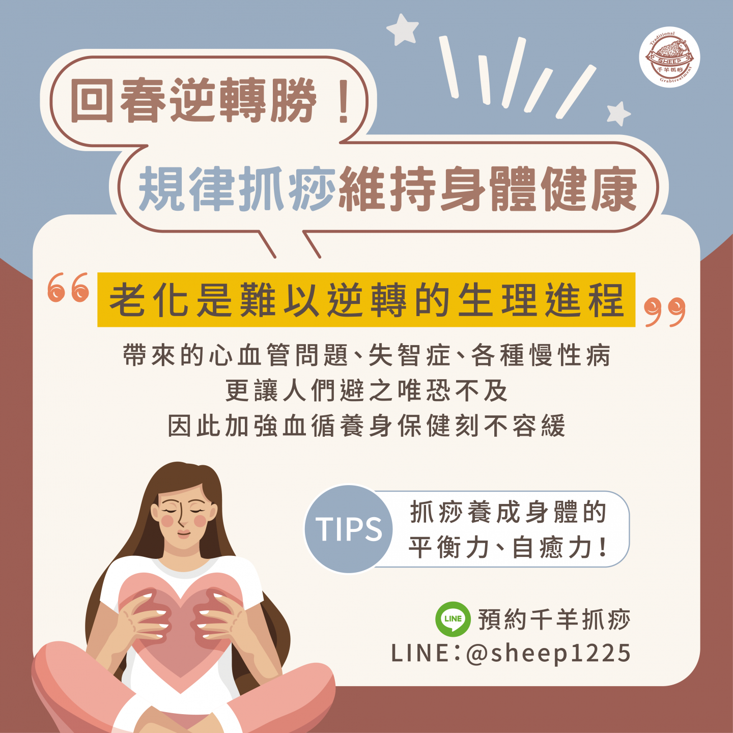 #回春逆轉勝 👉🏻抓痧不僅是舒緩身心的養生之法,更是激發身體平衡力、自癒力的關鍵! 隨著時間的推移,我們無法改變生理自然規律, 但可以透過日常保健來維持活力與健康狀態! 抓痧將血循中的雜質廢物抓出,增強體內能量, 讓你在日常生活中感受到真實的健康改變: ❶水氣平衡 ❷健康維持 ❸提振精神 ❹改善疲勞 ❺促進代謝 ❻舒緩壓力 能量滿滿,健康不斷線! 規律抓痧,隨時隨地保持最佳狀態✨
